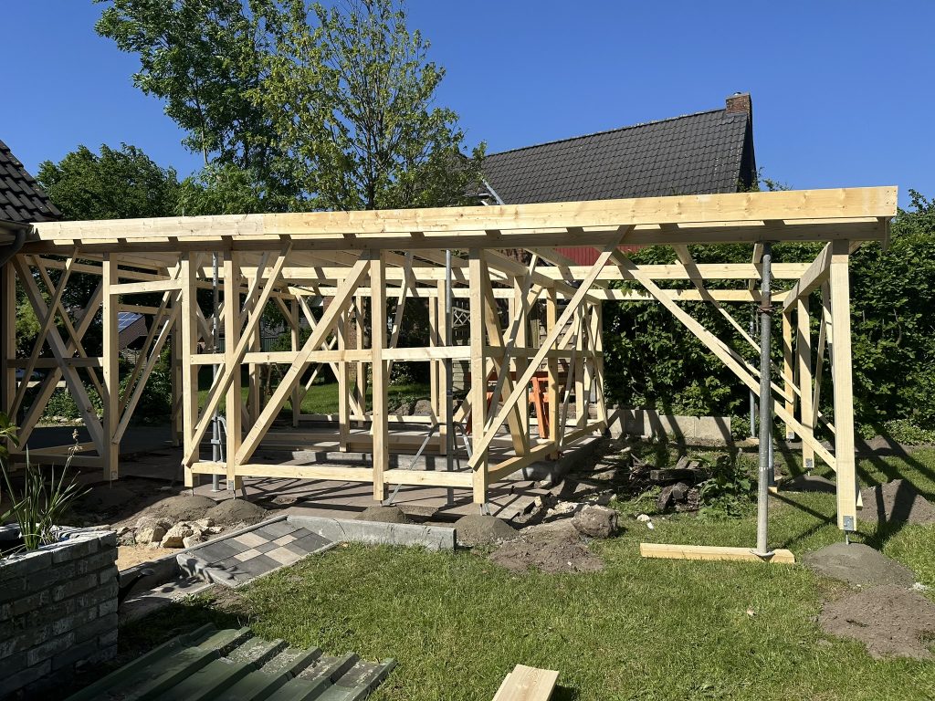 Unser Carport-Service bietet Ihnen individuell angefertigte und langlebige Carports aus Holz. In unserer Werkstatt fertigen wir nach Ihren Wünschen präzise zugeschnittene und bearbeitete Holzkonstruktionen. Vom Anreißen und Zuschnitt bis hin zur Montage vor Ort sorgen wir für höchste Qualität und Passgenauigkeit. Unsere erfahrenen Zimmerer wählen das beste Holz aus und bereiten es sorgfältig vor, um einen stabilen und optisch ansprechenden Carport zu gewährleisten. Vertrauen Sie auf unsere Expertise für maßgeschneiderte Carports, die Ihr Fahrzeug schützen und Ihren Außenbereich aufwerten.